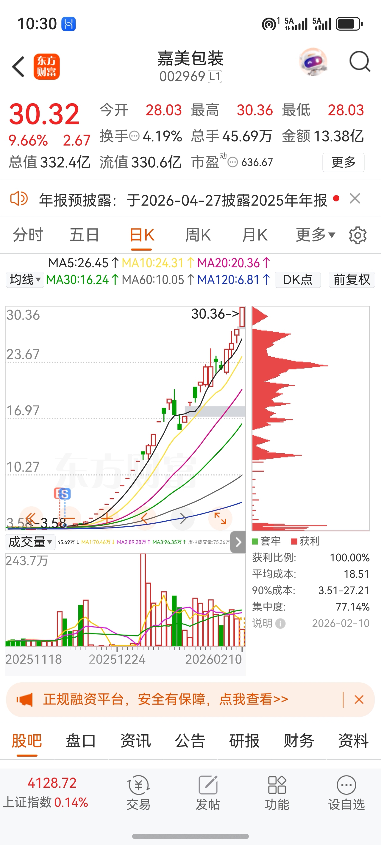 $嘉美包装(SZ002969)$ 你们入手太晚了,都这么高了,风险多大