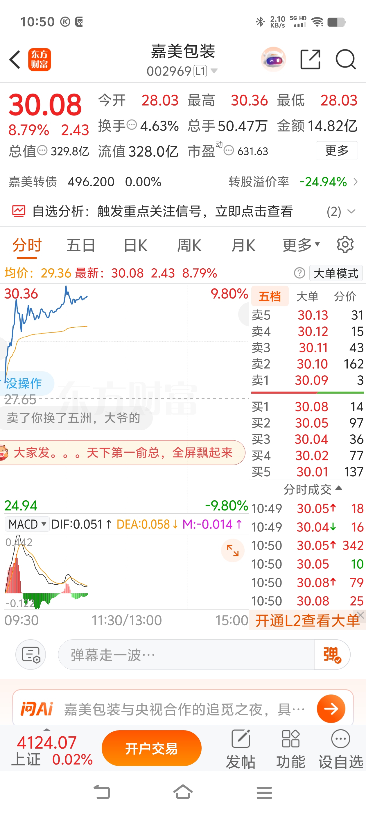$嘉美包装(SZ002969)$ 全屏飘起来哈哈哈