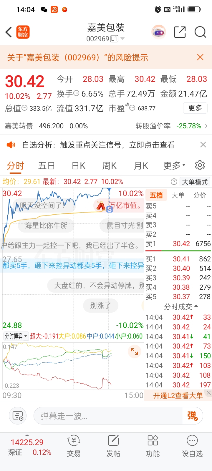 $嘉美包装(SZ002969)$ 跑了,感谢兄弟姐妹们给我送钱来