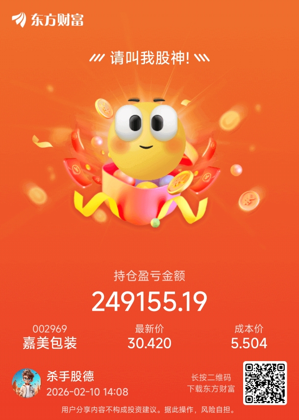 $嘉美包装(SZ002969)$ 过年要用钱,先减仓拿钱出来用,年后继续干嘉美