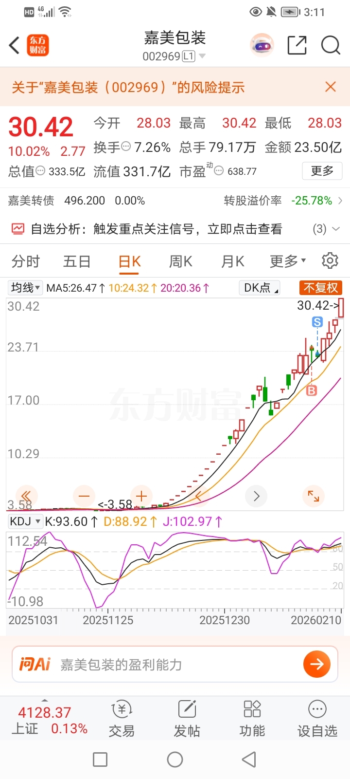 $嘉美包装(SZ002969)$ 天生的穷命,买了又卖掉,恐高