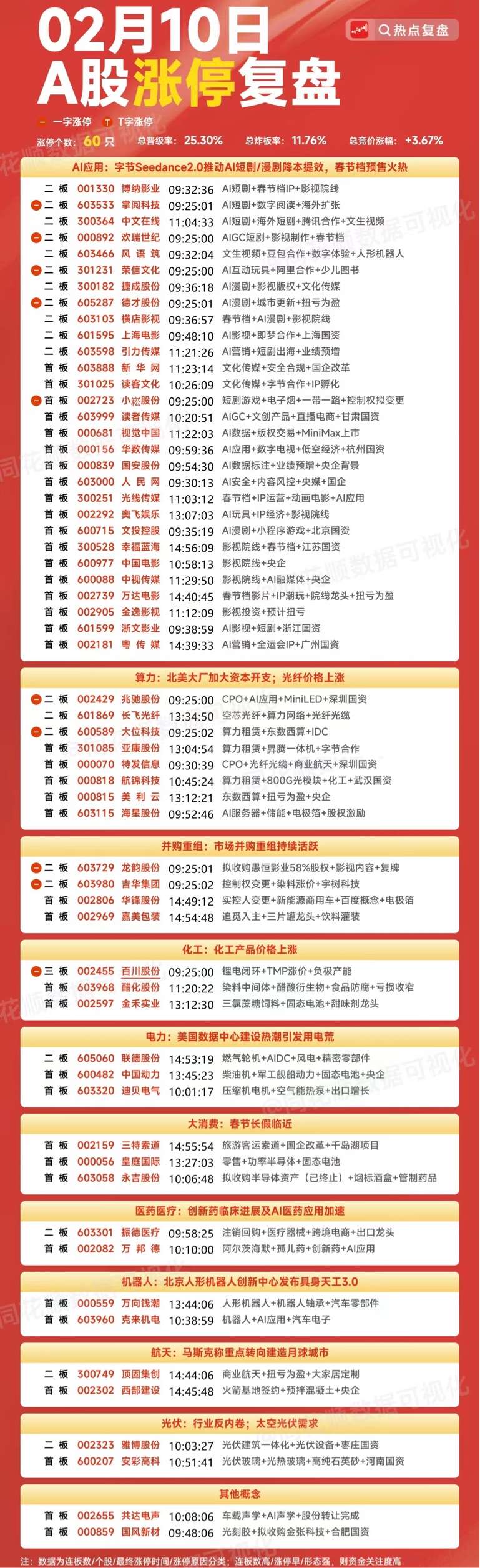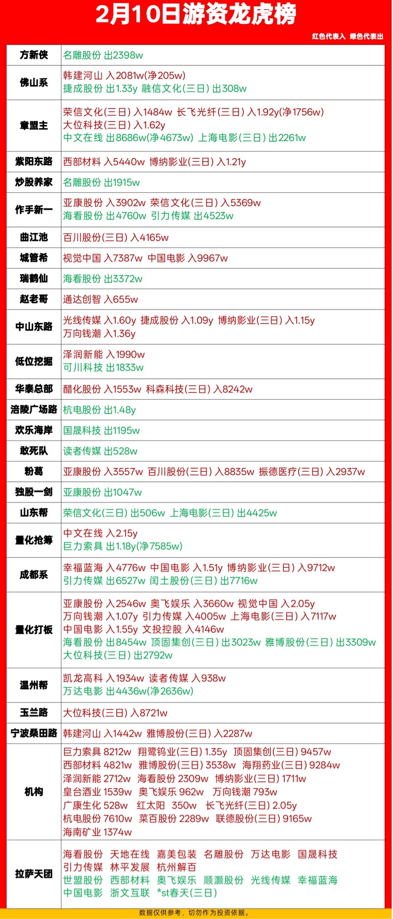 2月10日 游资龙虎榜&各大板块涨停个股复盘