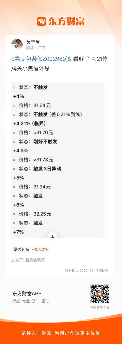 $嘉美包装(SZ002969)$ 看好了 4.21停牌关小黑屋休息
