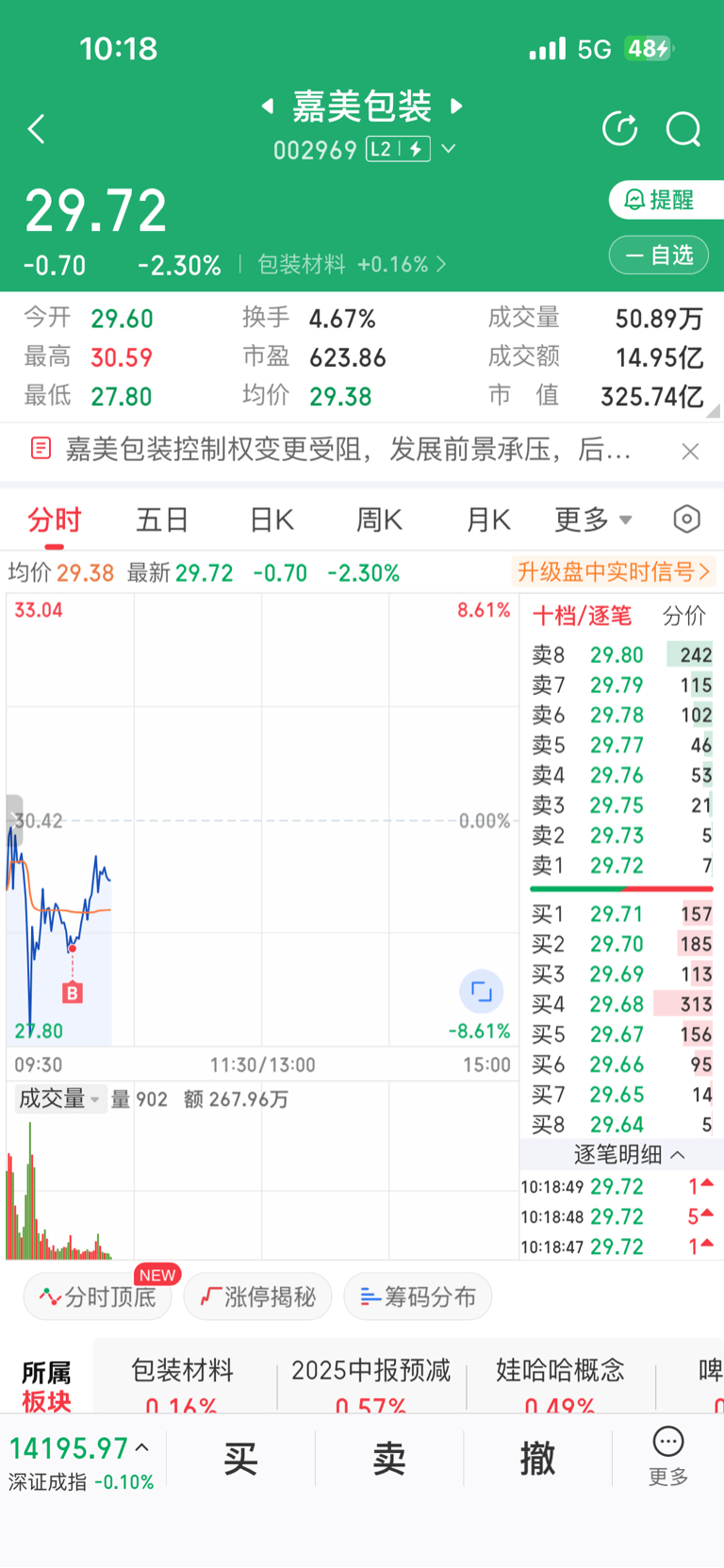$嘉美包装(SZ002969)$ 麻了,老年人手速-8一路追着挂买不到,等稳定了才在-5买到,今天就这样了,睡觉