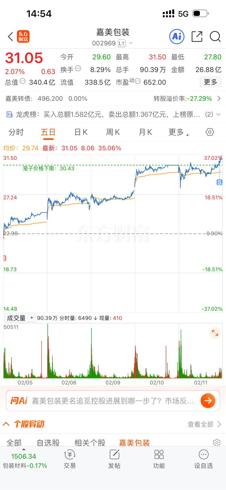 $嘉美包装(SZ002969)$ 兄弟们,年后再来了!过年红包到手!