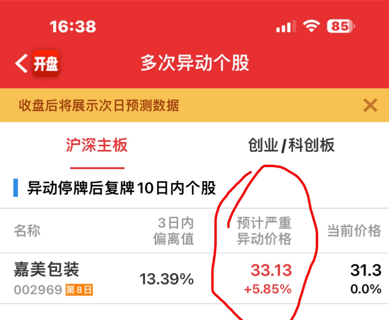 $嘉美包装(SZ002969)$ 控制一下兄弟们,明天稳定在33就好了,最好是32就可以,稳住,每天数钱不爽吗?非要关小黑屋徒增变数烦恼!稳定稳住,不要再买了,分点筹码给抢筹的兄弟们