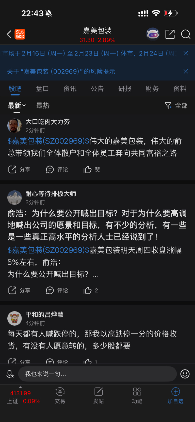 $嘉美包装(SZ002969)$ 看看这货伟大二字都用上了。什么样的人什么样的事才配得上伟大二字呢?可见这货有多愚蠢!