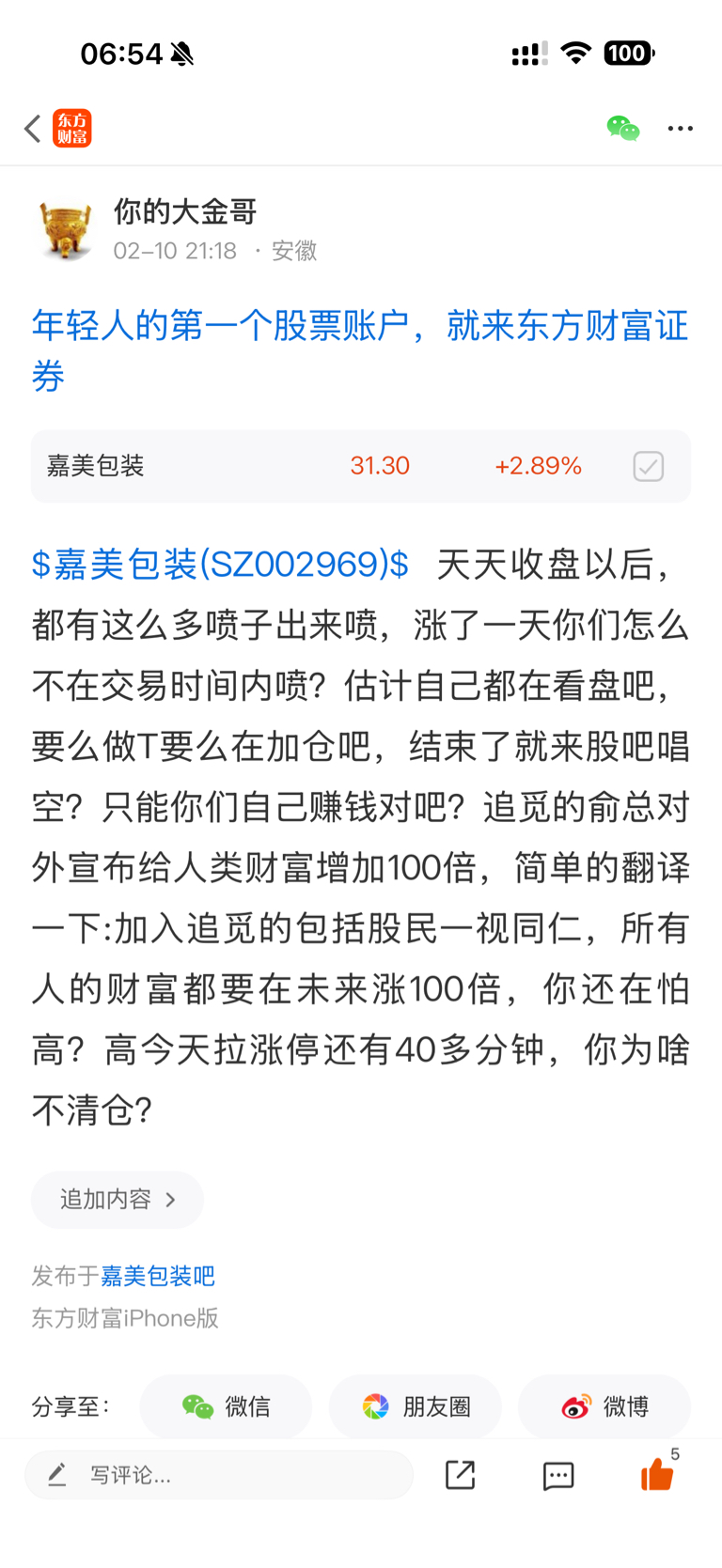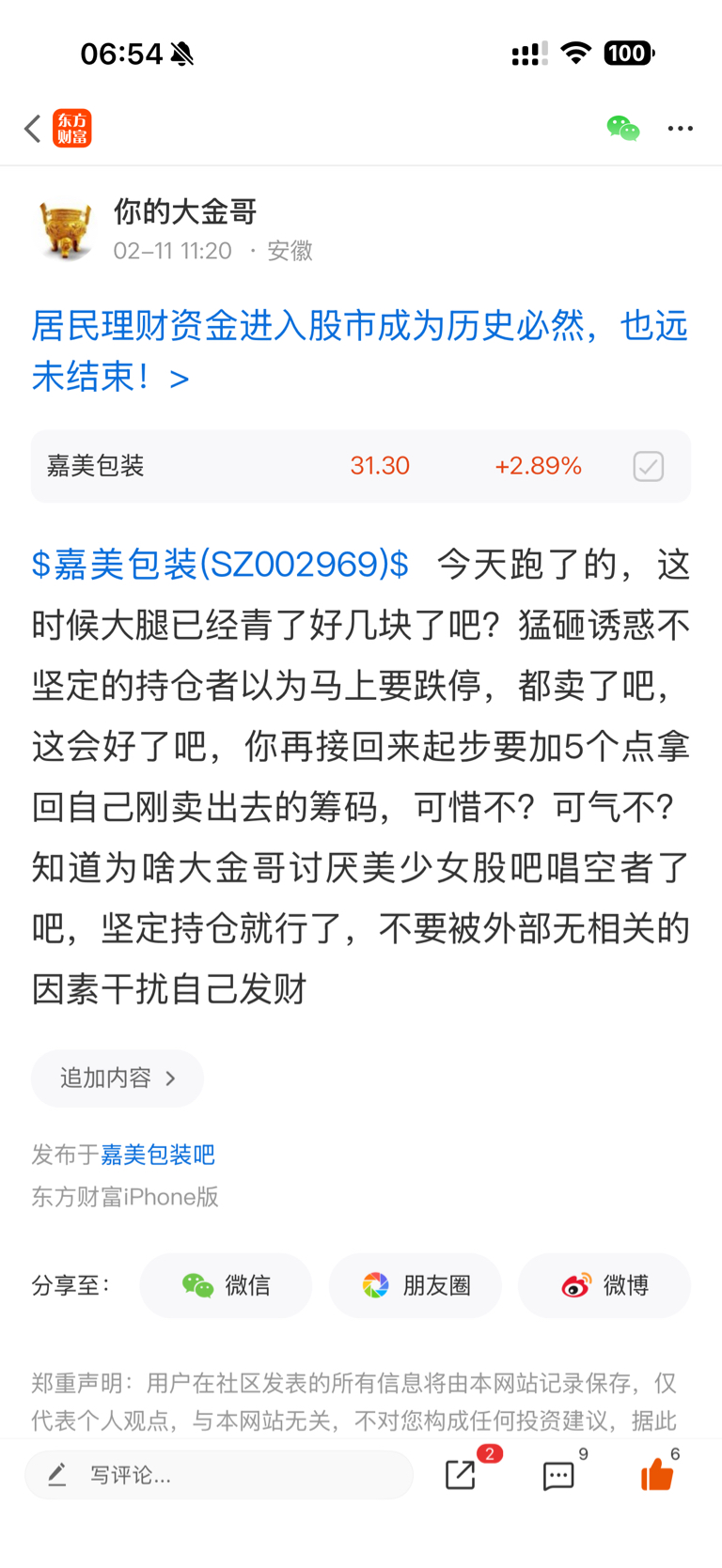 温馨提示: 1.根据《证券法》规定,禁止编造、传播虚假信息或者误导性信息,扰乱证券市场;2.用户在本社区发表的所有资料、言论等仅代表个人观点,与本网站立场无关,不对您构成任何投资建议。用户应基于自己的独立判断,自行决定证券投资并承担相应风险。《东方财富社区管理规定》