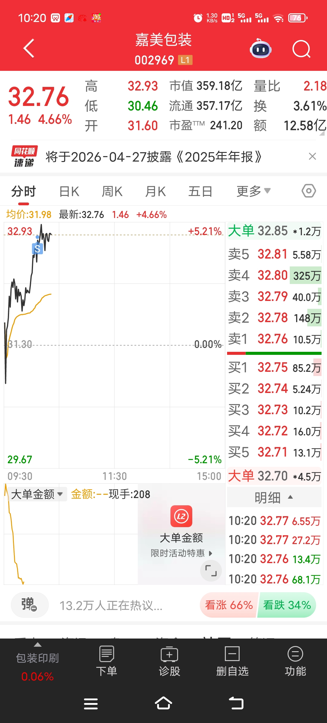 $嘉美包装(SZ002969)$ 哥,你不下来歇会吗?昨天没套,难受一天,今天卖半仓,你还下不去了