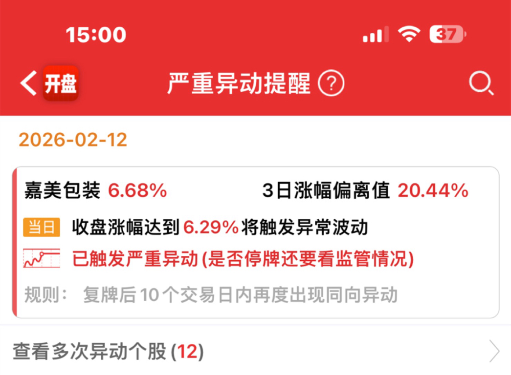 $嘉美包装(SZ002969)$ 异动了