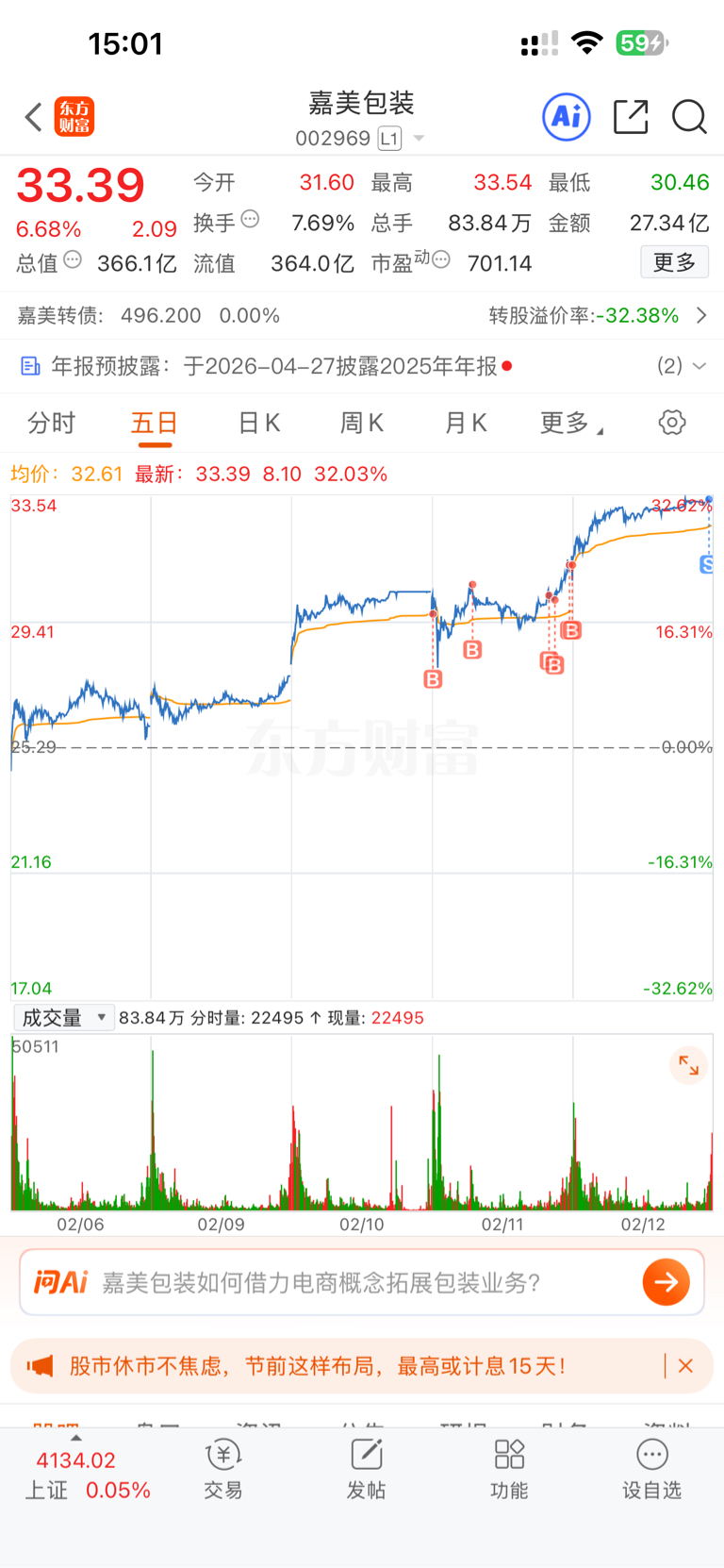 $嘉美包装(SZ002969)$ 主力到底是珍惜自己的筹码,还是卖完了筹码没压住?