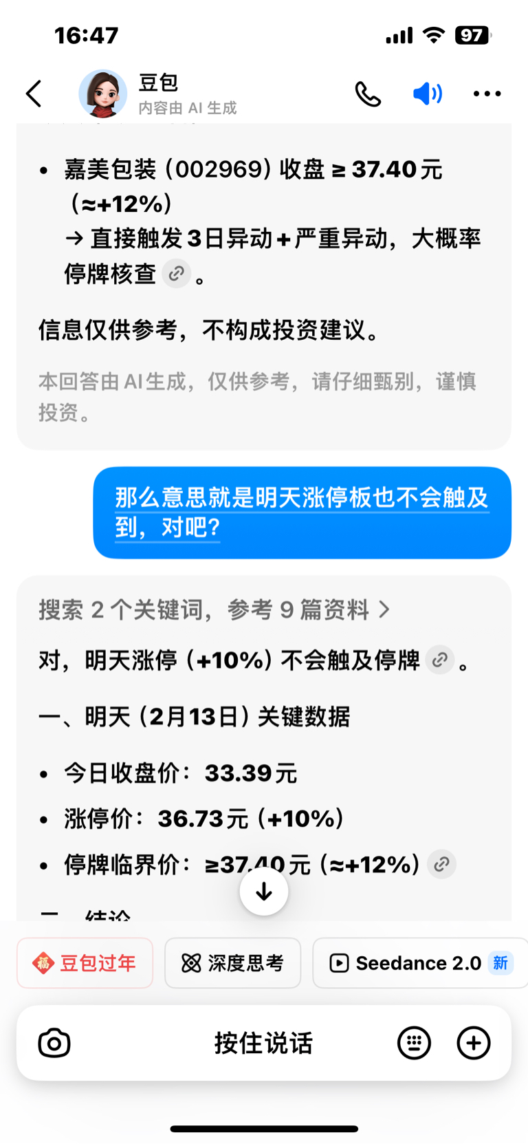 $嘉美包装(SZ002969)$ 今天控盘厉害。明天涨停也不会触发,只有明天大于12%才会触发