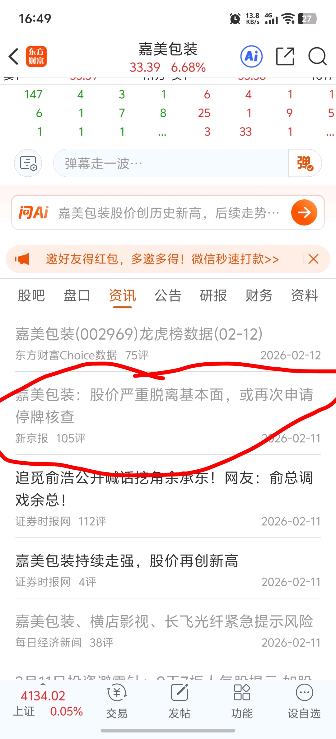 $嘉美包装(SZ002969)$ 警告过,只要异动就必停牌,3月份再交易吧。休息一个月。