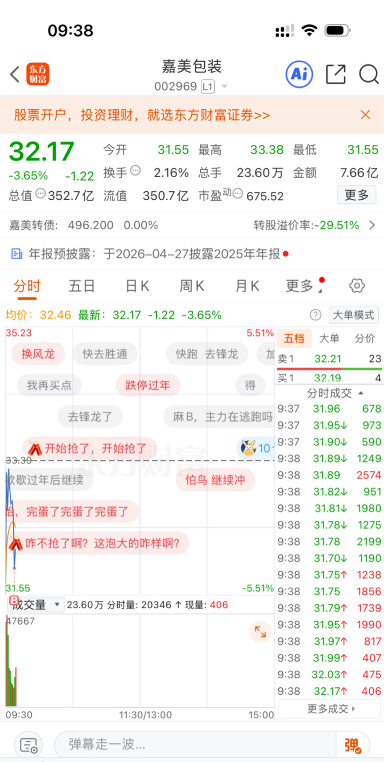 31.93选择水下低吸博弈$嘉美包装(SZ002969)$ #强势机会# #实盘记录# #投资干货# #投资随笔#
