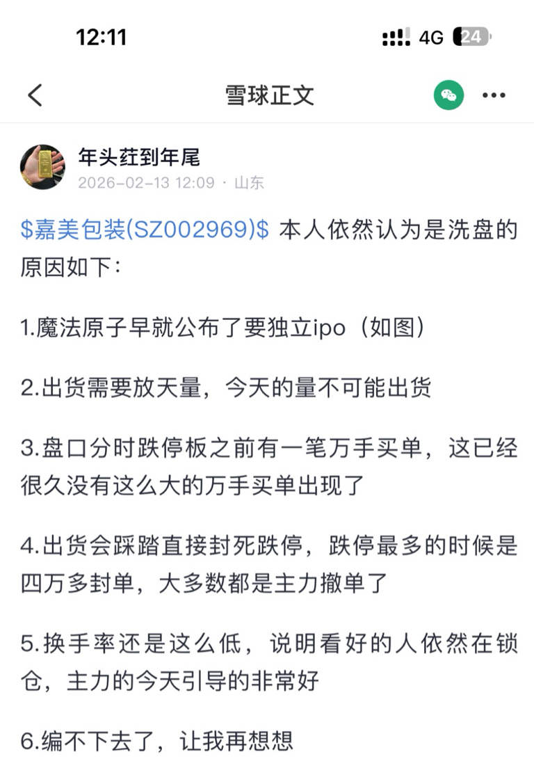 $嘉美包装(SZ002969)$ 分析如下