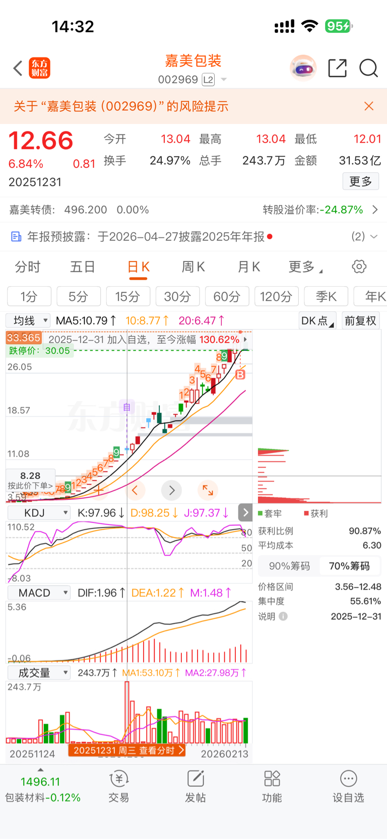 从25年12月31日关注一直没买!看着翻倍!昨天实在忍不住了尾盘买了200试试!