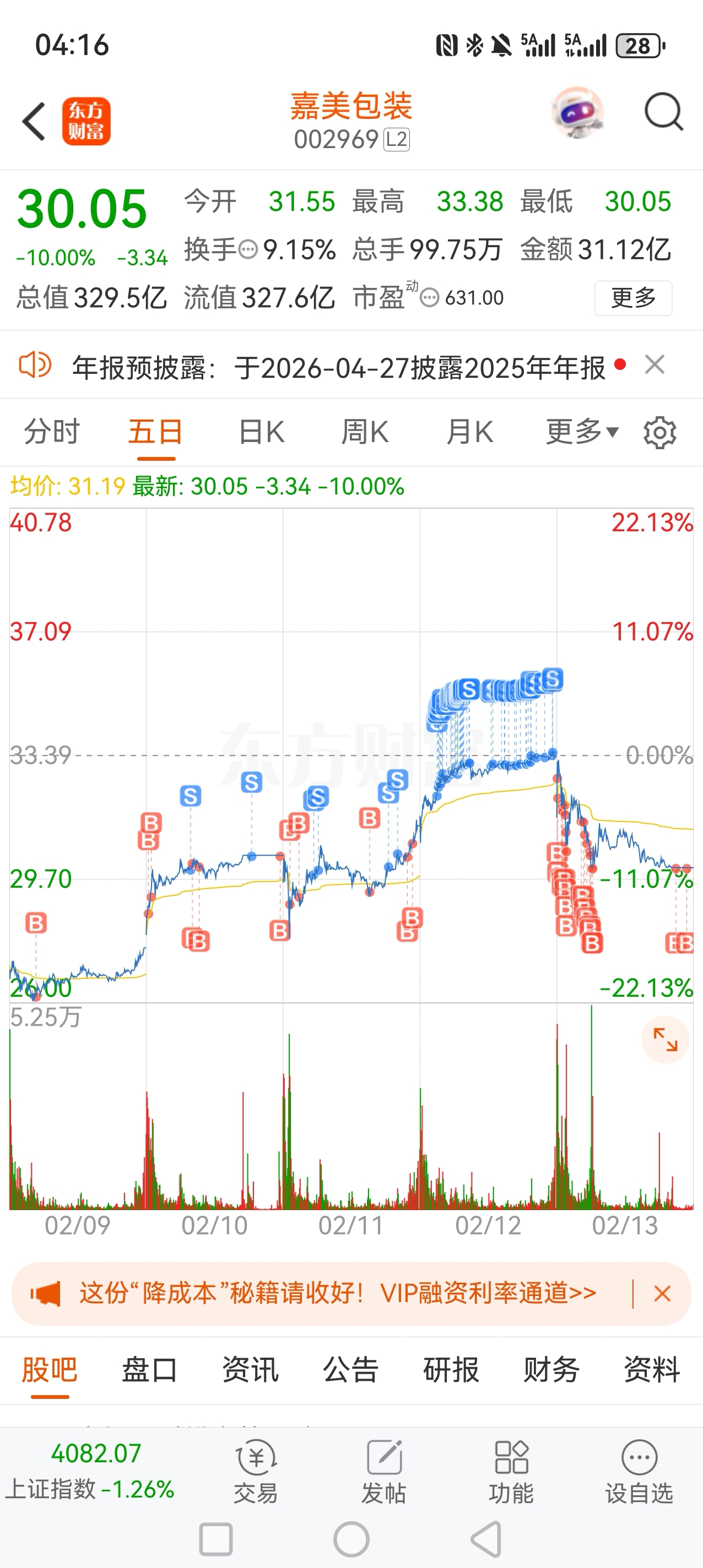 $嘉美包装(SZ002969)$ 昨天清完,今天满仓干满!!