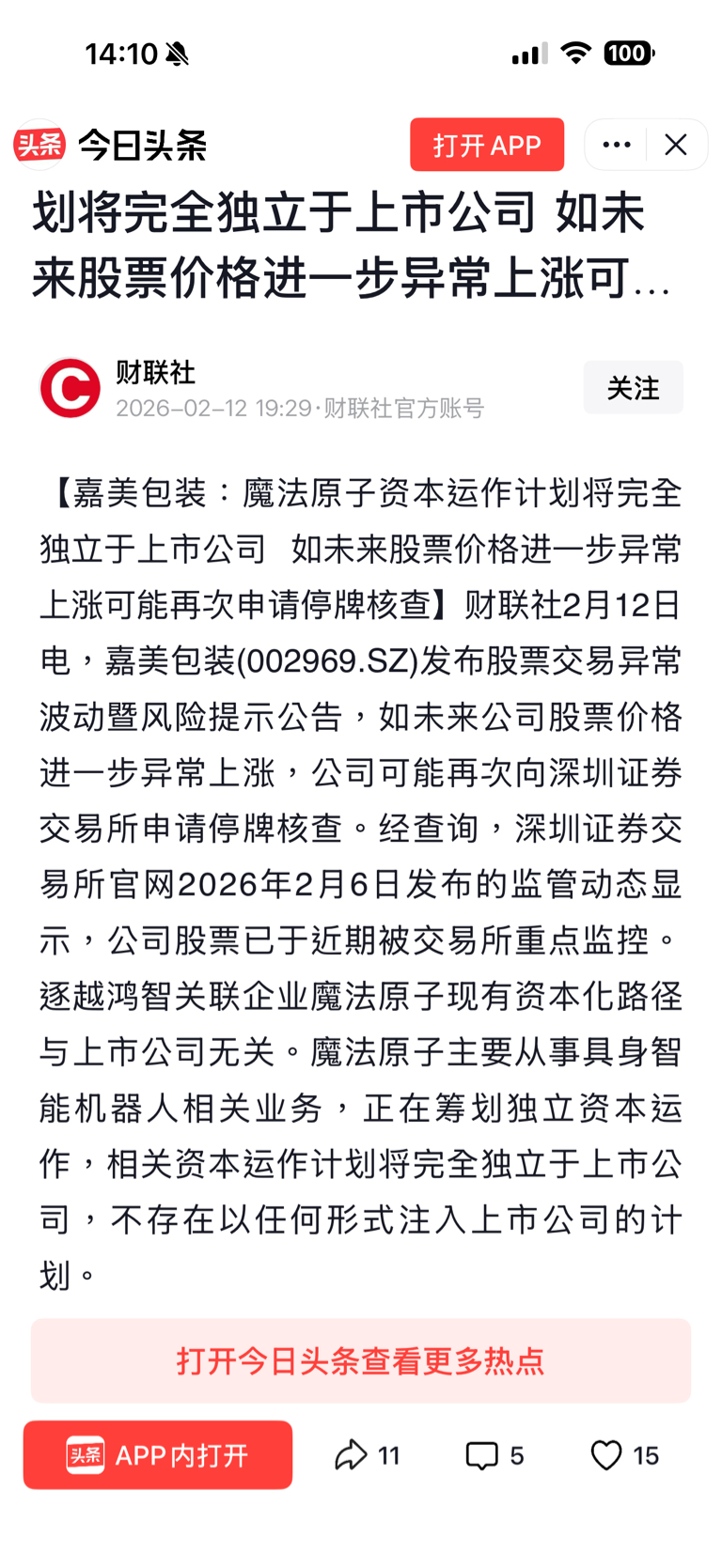 这个信息是哪里得知的?魔法原子股改都没搞?上市?没个几年能搞得定?吧里以前有位股友分析得很到位,几年内魔法原子都上不了市。上市哪有那么容易?真容易追觅都自己上市了,何必花几十个亿买嘉美?炒股要动脑子。