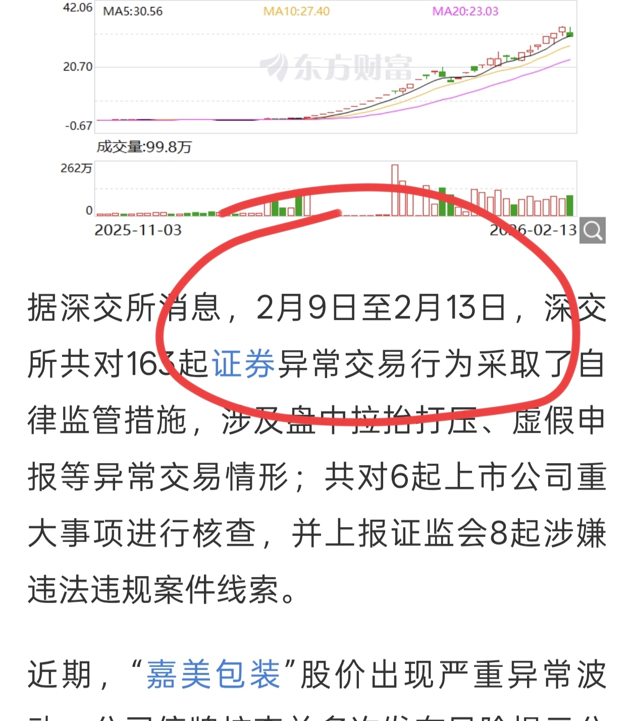 第一点:关于限制相关账户交易,这是从2月9日开始的,到2月13日结束,深交所发的这个公告是对每周工作的一个汇总,每周都会发这个公告,自己去查一查就知道了