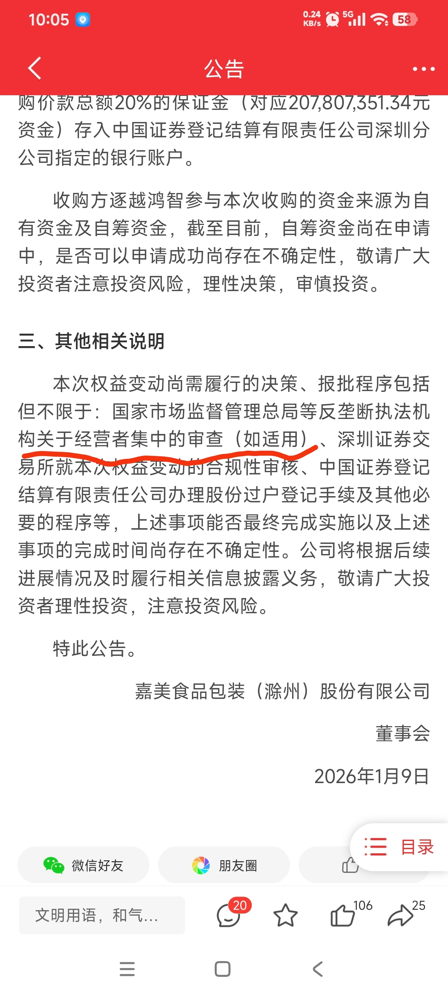 $嘉美包装(SZ002969)$ 第一步反垄断审结了,现在到关键的第二步了,难怪俞总要静默了
