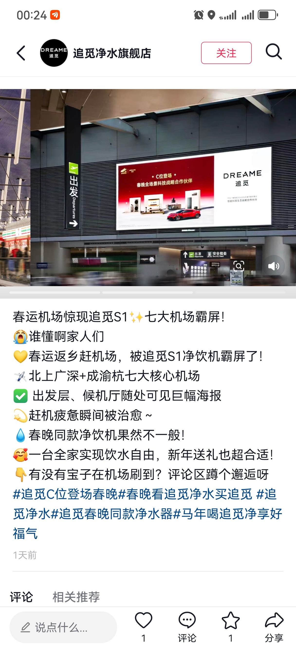 追觅的广告已经霸屏七大机场,追觅更是这届春晚最大的赢家,抖音可以看看财经博主周媛