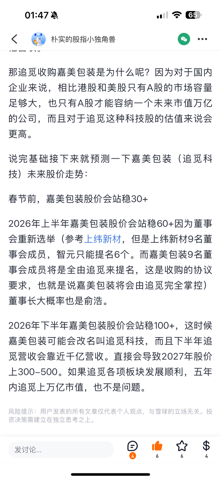 $嘉美包装(SZ002969)$ 这是我一个月前对嘉美包装股价的预测,可以说很准!春节前站稳了30+。接下来就看年后我的预测准不准了,3月份嘉美包装股价站稳50+,4月份股价站稳60+,年底股价站稳100+