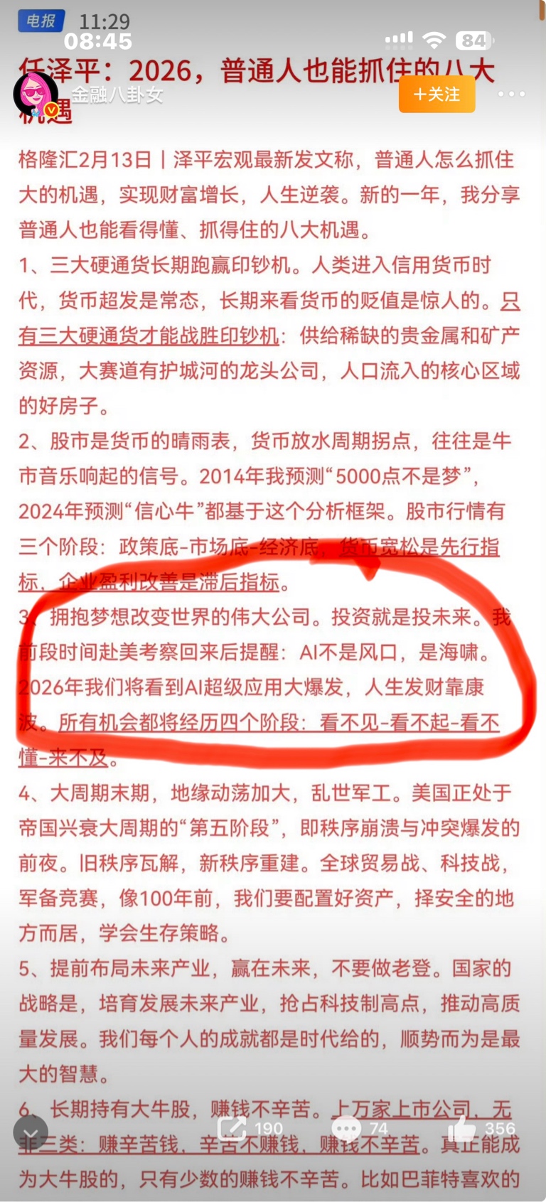 郑重声明:用户在财富号/股吧/博客等社区发表的所有信息(包括但不限于文字、视频、音频、数据及图表)仅代表个人观点,与本网站立场无关,不对您构成任何投资建议,据此操作风险自担。请勿相信代客理财、免费荐股和炒股培训等宣传内容,远离非法证券活动。请勿添加发言用户的手机号码、公众号、微博、微信及QQ等信息,谨防上当受骗!