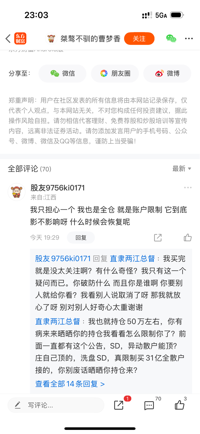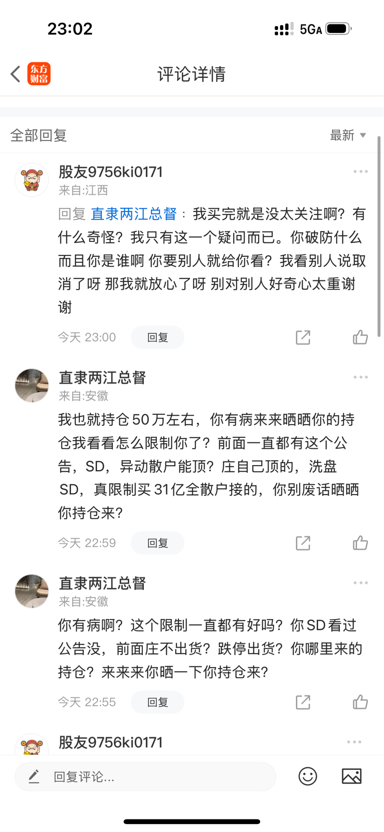 温馨提示: 1.根据《证券法》规定,禁止编造、传播虚假信息或者误导性信息,扰乱证券市场;2.用户在本社区发表的所有资料、言论等仅代表个人观点,与本网站立场无关,不对您构成任何投资建议。用户应基于自己的独立判断,自行决定证券投资并承担相应风险。《东方财富社区管理规定》