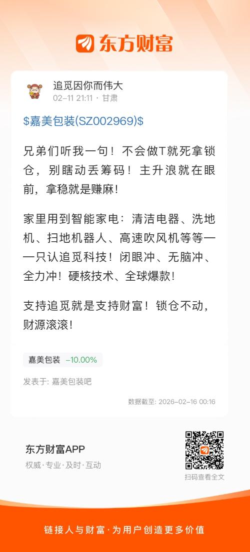 温馨提示: 1.根据《证券法》规定,禁止编造、传播虚假信息或者误导性信息,扰乱证券市场;2.用户在本社区发表的所有资料、言论等仅代表个人观点,与本网站立场无关,不对您构成任何投资建议。用户应基于自己的独立判断,自行决定证券投资并承担相应风险。《东方财富社区管理规定》