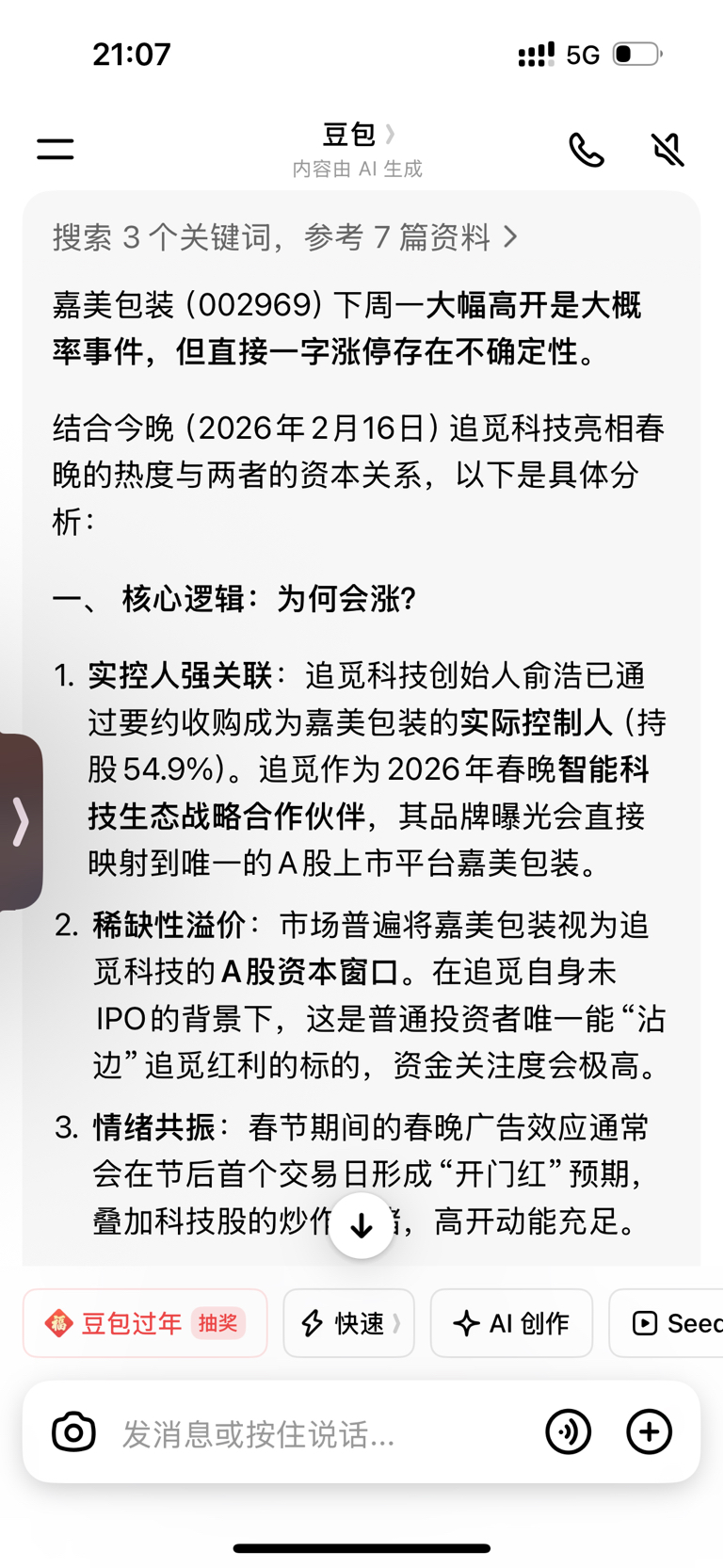 $嘉美包装(SZ002969)$ 豆包这么说的