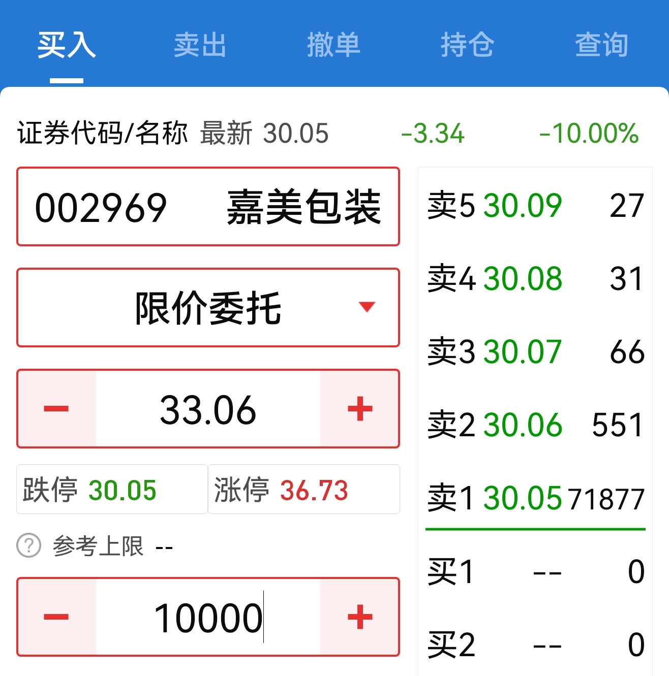 $嘉美包装(SZ002969)$ 以涨停价报进去了