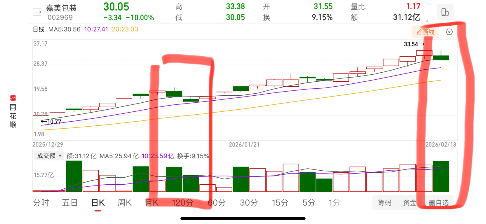 $嘉美包装(SZ002969)$ 复盘了3次嘉美包装跌停板的k线,这三次都不是一字跌停,每次都是主力借着异动警告砸盘洗盘,在跌停板附近吸了20-30亿的货,有点意思,我已经看穿了这主力做t的手法,每次吸完货就会大涨。可以预测节后必然是大涨5天。
