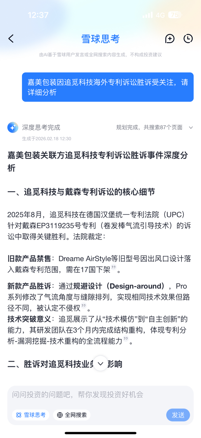 $嘉美包装(SZ002969)$ 刚刚的信息硬刚戴森胜诉牛逼