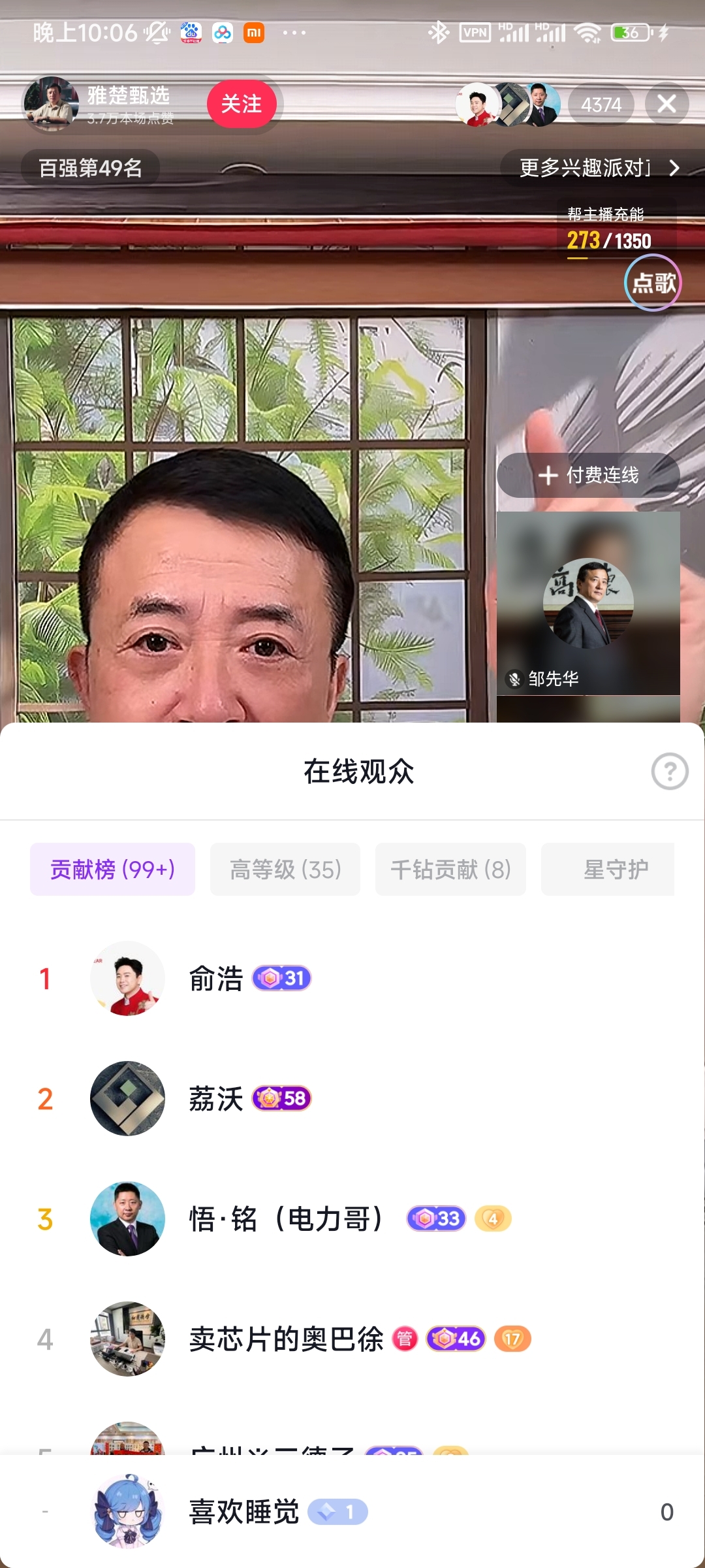 俞浩本人在抖音直播间