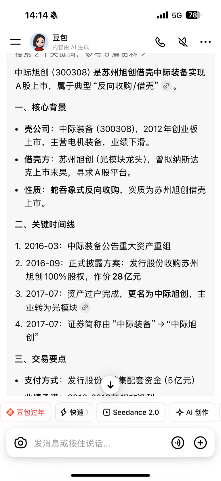 中际旭创借壳中际装备,市值从30亿元涨到了6000亿,股价翻了200倍。你们觉得