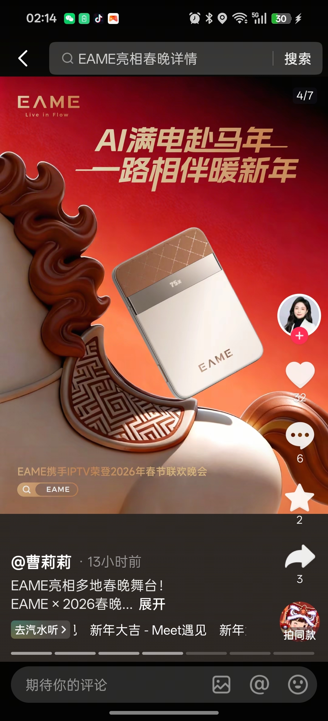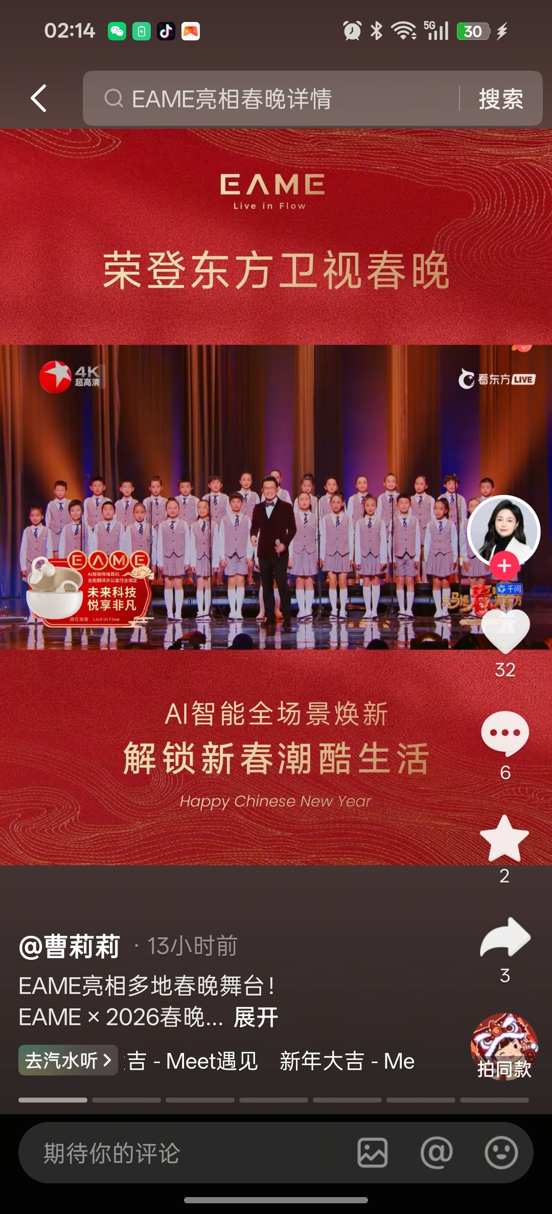 EAME荣登东方卫视春晚,北京卫视春晚,亮相多地春晚舞台。追觅品类多不多,牛不牛