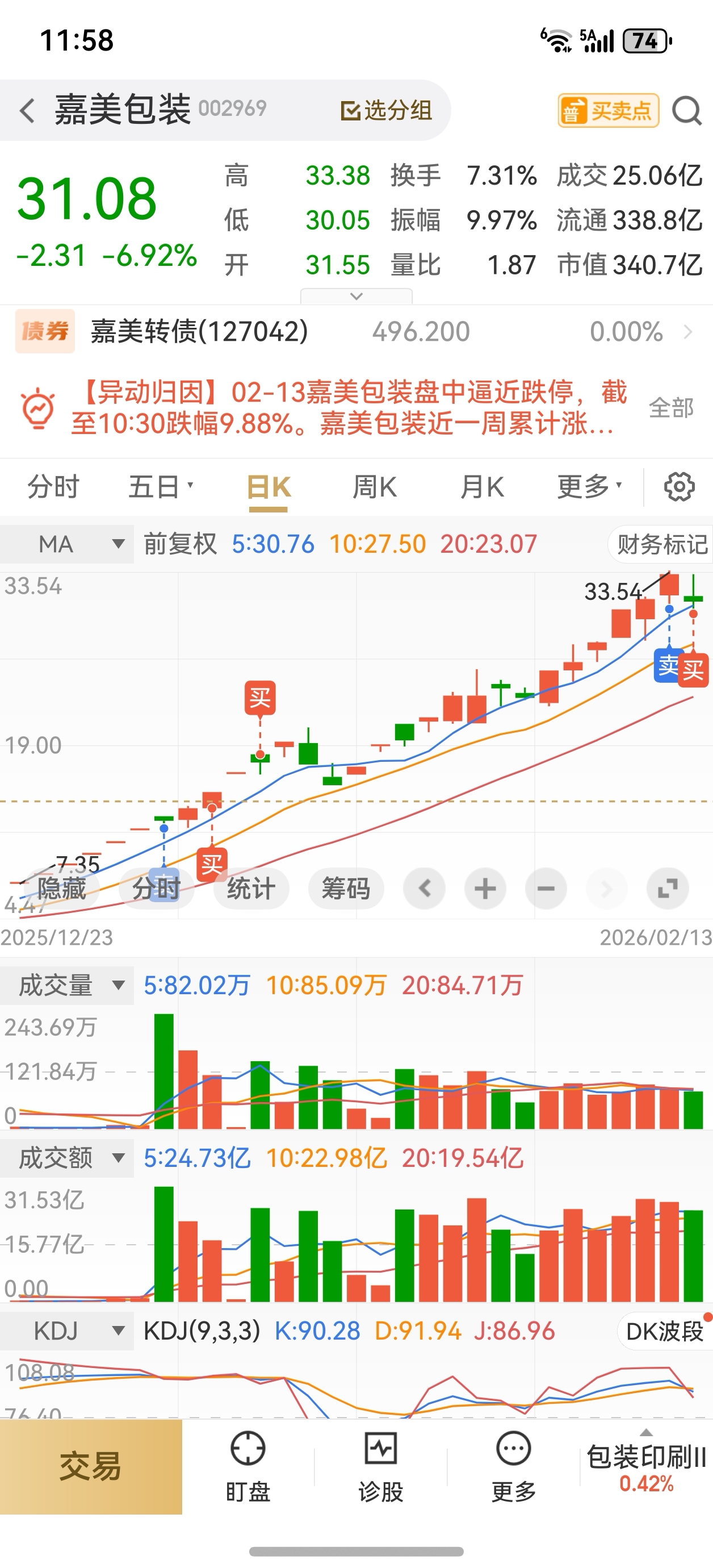 $嘉美包装(SZ002969)$ 中长线早就锁仓了。短线要调整一下。