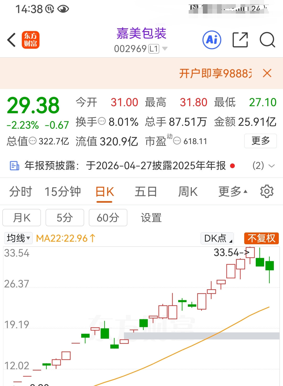 $嘉美包装(SZ002969)$ 尾盘走起来了,抄底一单。