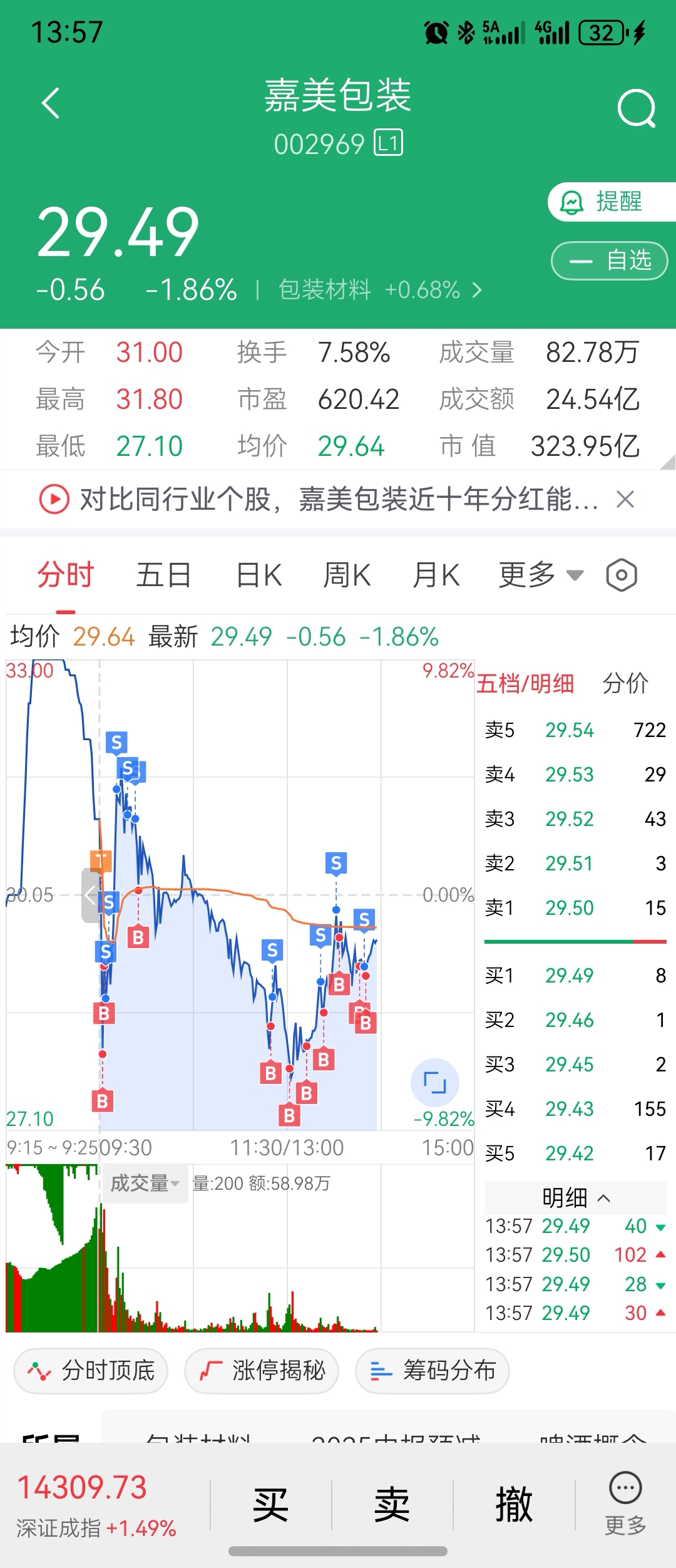 $嘉美包装(SZ002969)$ 看到60、60之前能T就T