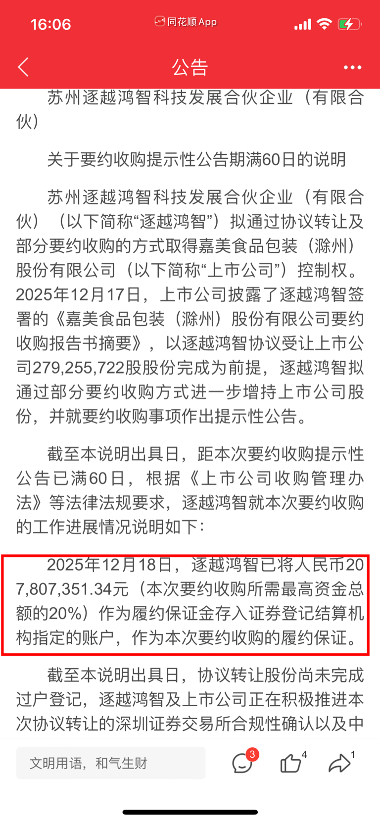 $嘉美包装(SZ002969)$ 要约收购的定金已经打了,公示也结束了,等着过户吧。 拿住