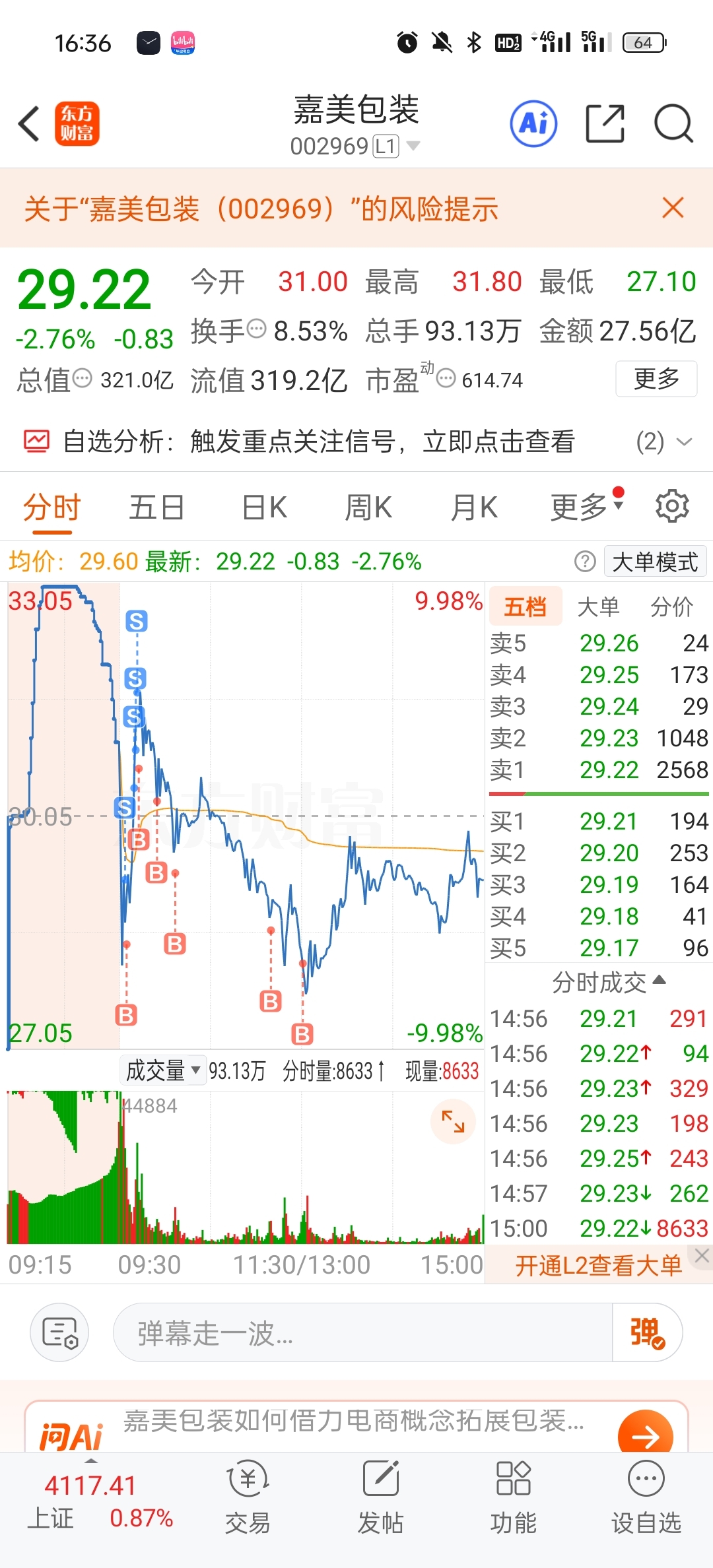 嘉美进入震荡期,能T就T,今天做T赚2个点