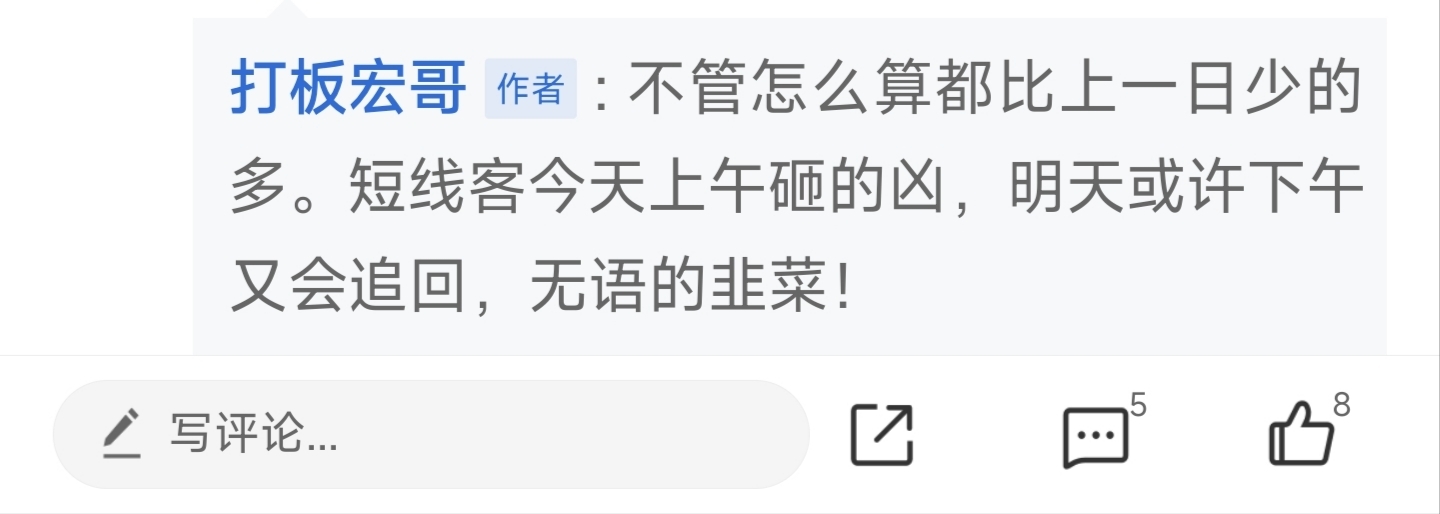 人少了,热度降了,唱多的短线客落荒而跑,明天该反攻了。