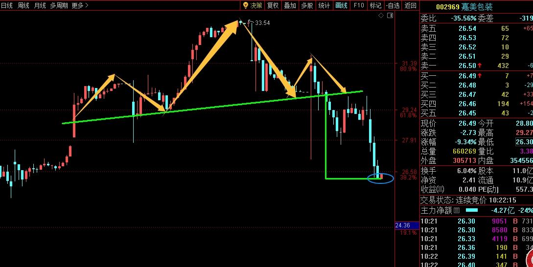 $嘉美包装(SZ002969)$ 26.3头肩顶的第一波跌幅刚刚好,第二波跌幅23.2
