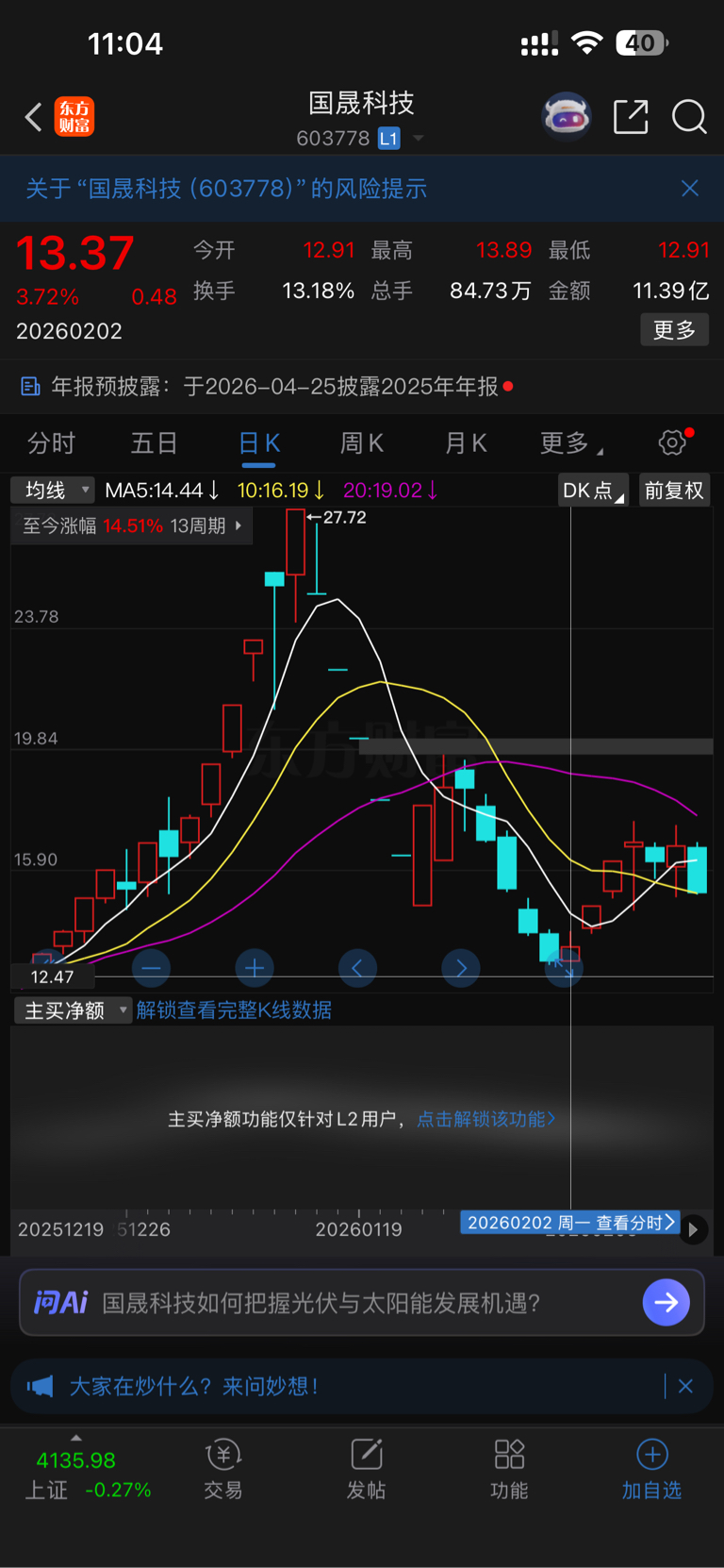 温馨提示: 1.根据《证券法》规定,禁止编造、传播虚假信息或者误导性信息,扰乱证券市场;2.用户在本社区发表的所有资料、言论等仅代表个人观点,与本网站立场无关,不对您构成任何投资建议。用户应基于自己的独立判断,自行决定证券投资并承担相应风险。《东方财富社区管理规定》