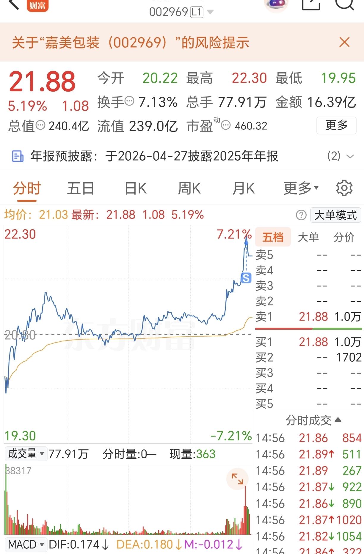 $嘉美包装(SZ002969)$ 仓位太重,减仓一部分,感恩哇。。