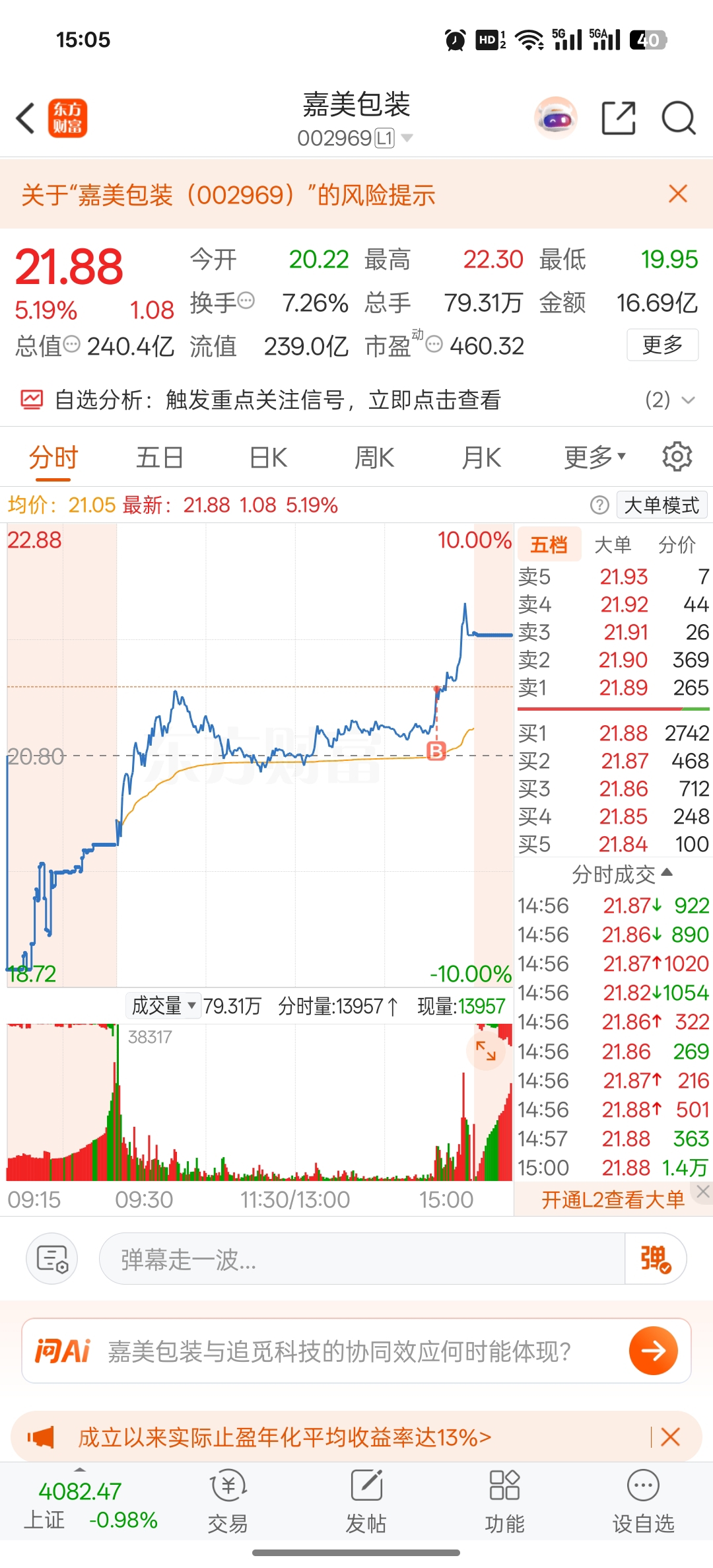$嘉美包装(SZ002969)$ 哈哈哈,我点火了