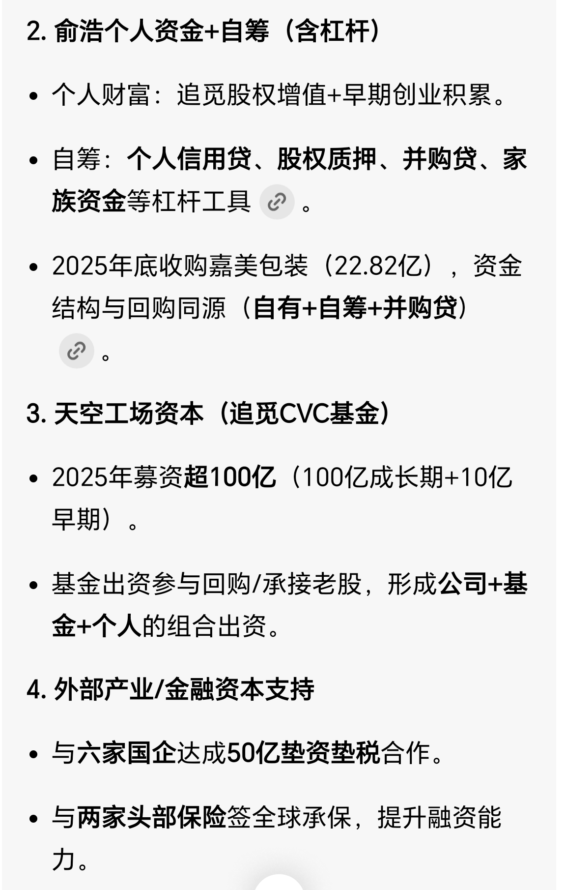 鉴于合规,俞浩不能动用追觅的钱来收购,但是他个人的授信和天空工厂授信,足够拿出好几个20亿,更别说两家头部险资为他站台支持他的资本运作