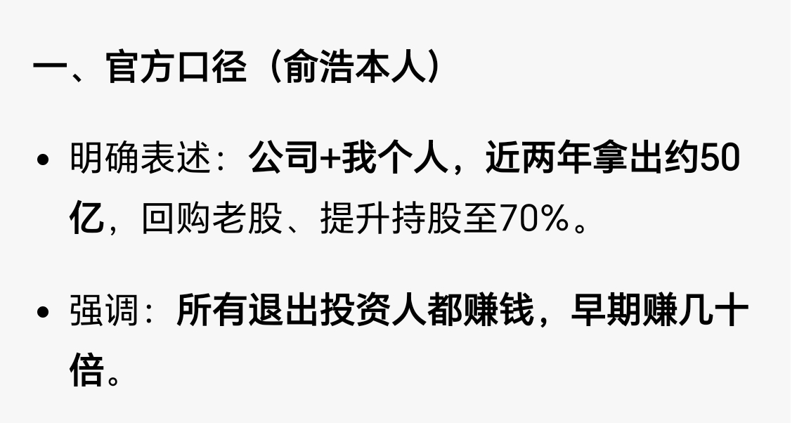 他个人和追觅前几年就50亿现金回购老股,让早期投资人先退出了