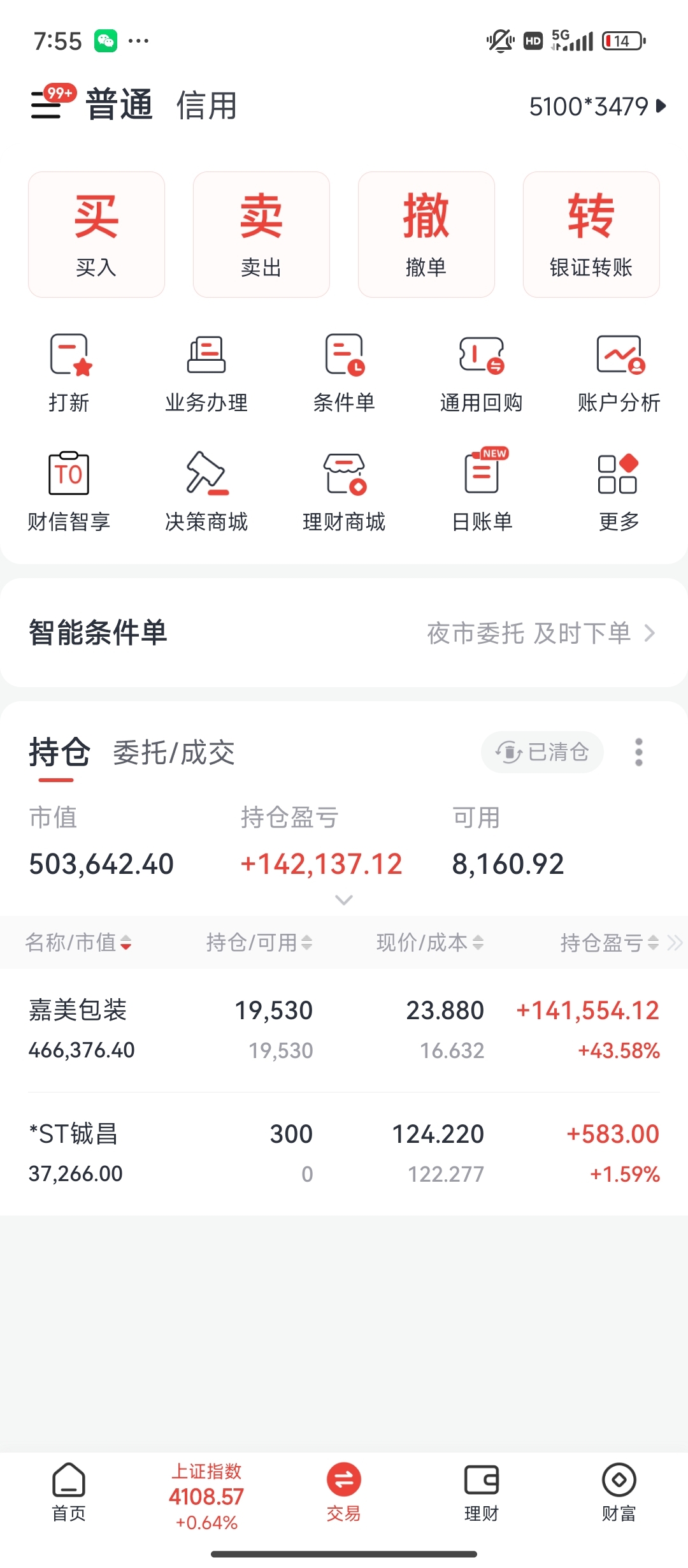 $嘉美包装(SZ002969)$ 谁能让我亏钱让我输,本来成本只有13块多的,前两天加仓成本提高了点