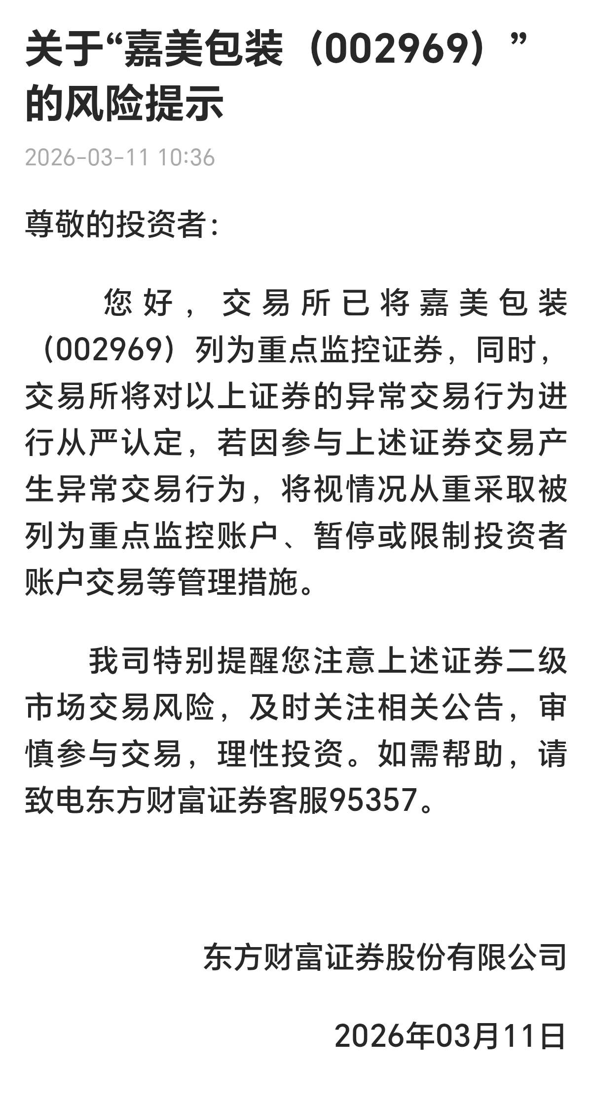 $嘉美包装(SZ002969)$ 卧槽,10:36盘中来监控